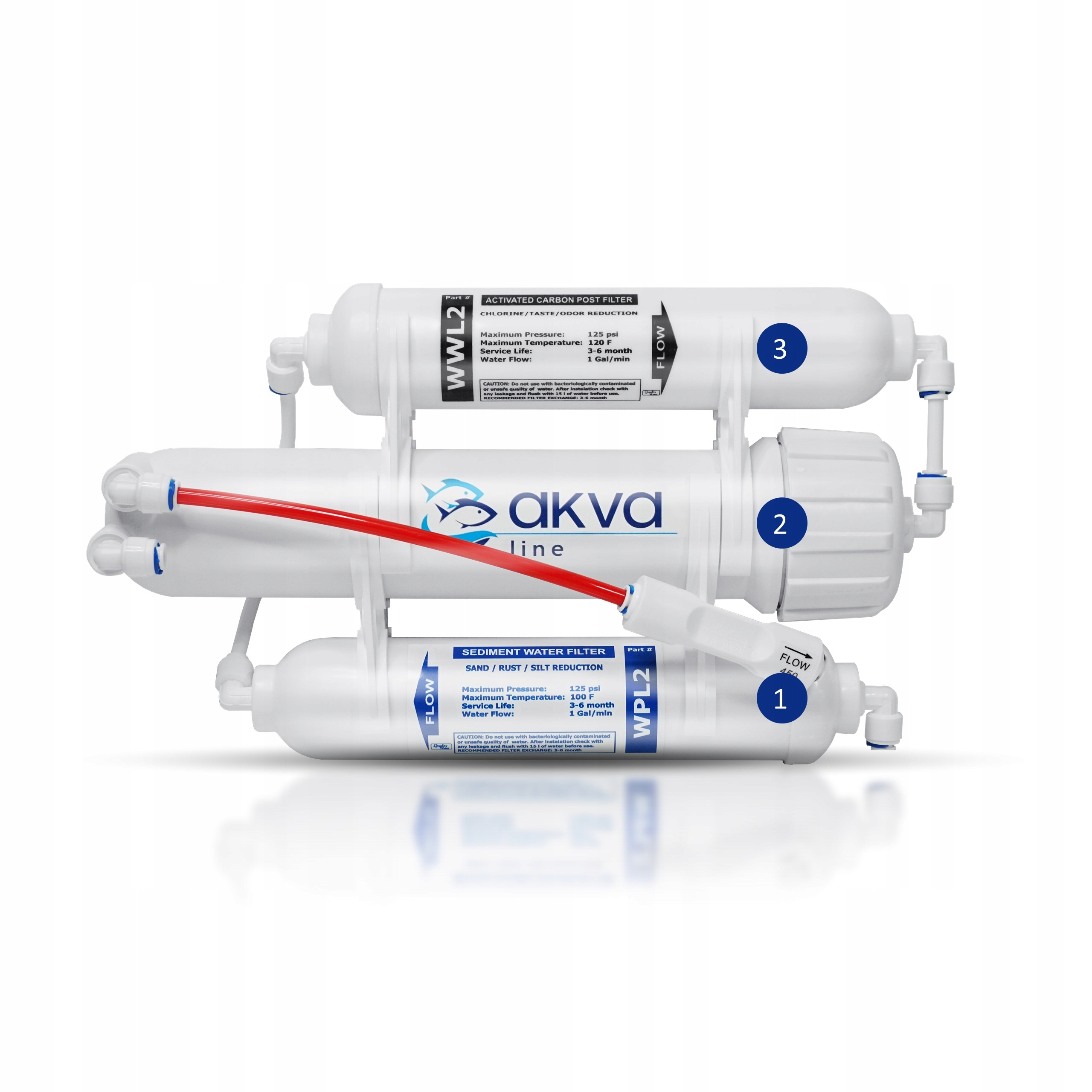 2. WWL2 - Угольные линейные картриджи удаляют из воды твердые загрязнители, такие как: хлор, соединения хлора, органические загрязнители. (заменяется максимум каждые 6 месяцев)