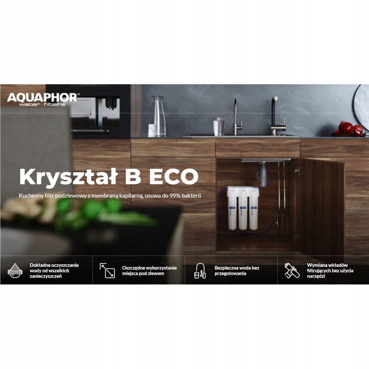 - Аквафор Kryształ B Eco — стационарный кухонный фильтр, подключаемый непосредственно к водопроводу, обычно устанавливается в кухонных шкафчиках под раковиной.< /li>
