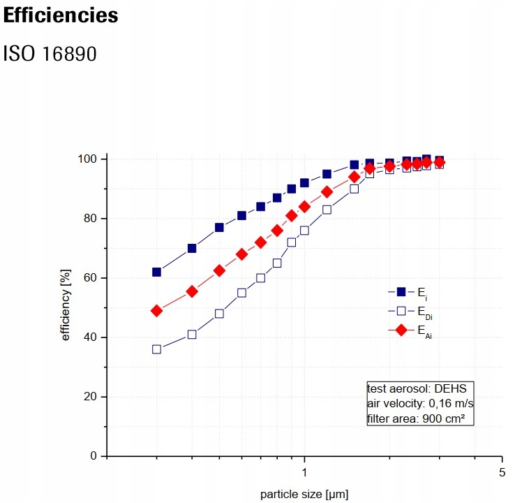 - КПД ISO 16890: ePM 1,мин 48 %, ePM 2,5, мин. 57 %, ePM1 61 %, ePM2,5 70 %