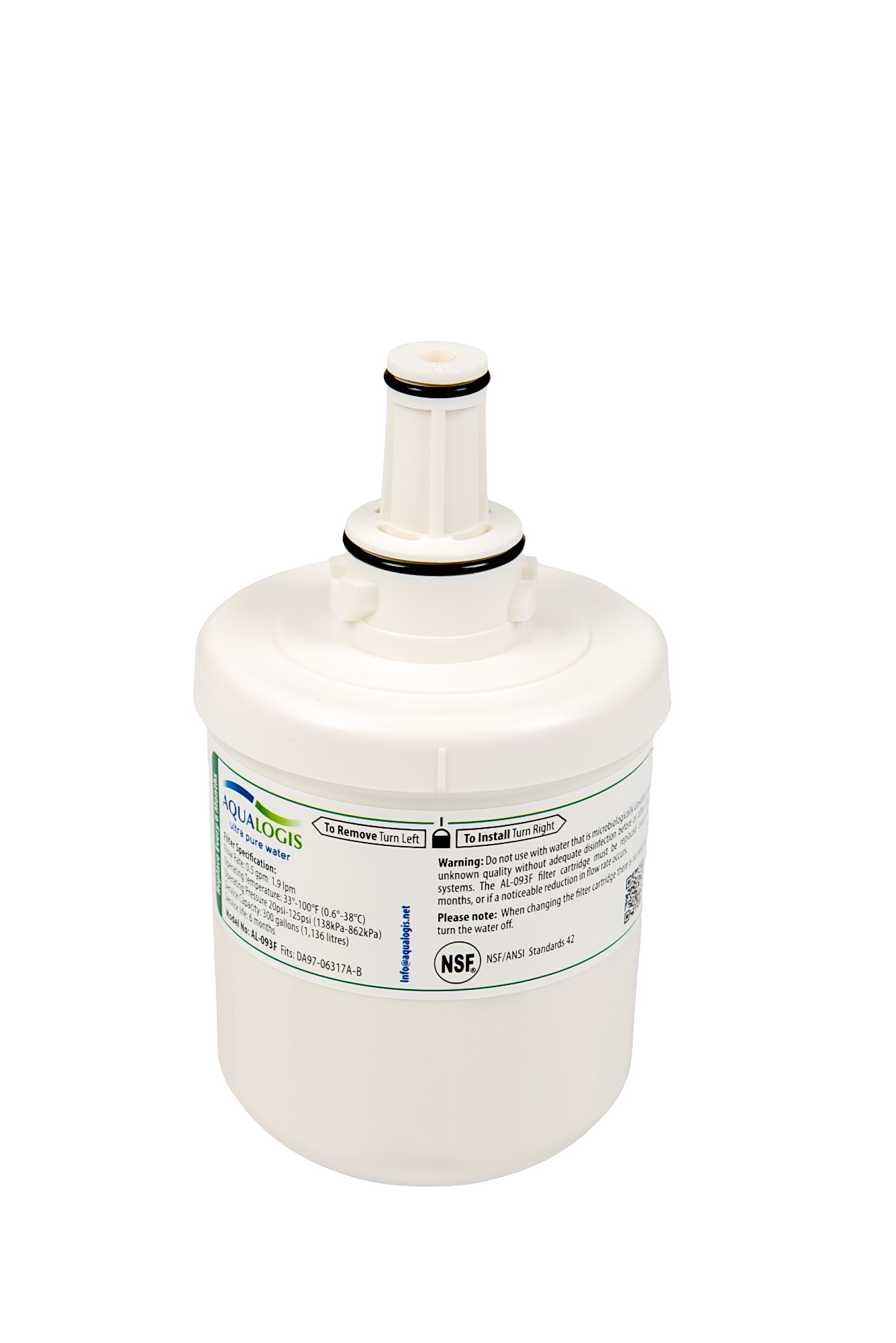 Фильтр Aqualogis AL-093F для холодильника Samsung с льдогенератором. Он идеально подходит в качестве замены фильтра Samsung DA29-00003F в зеленой коробочке, как на фото ниже.