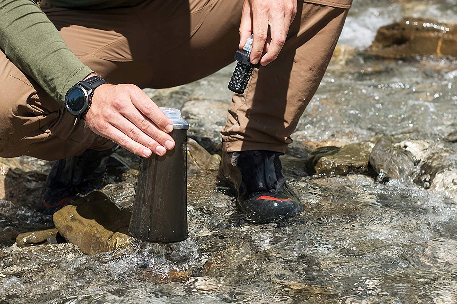 Новый фильтр для воды из серии BeFree — 1,0 л из тактической линии черного цвета. Больший объем позволяет легко транспортировать безопасную питьевую воду даже во время длительного пребывания без видимых источников воды, будь то походы или путешествия. Фильтр для воды весит всего 63 г и фильтрует до 2 литров в минуту во время использования.
