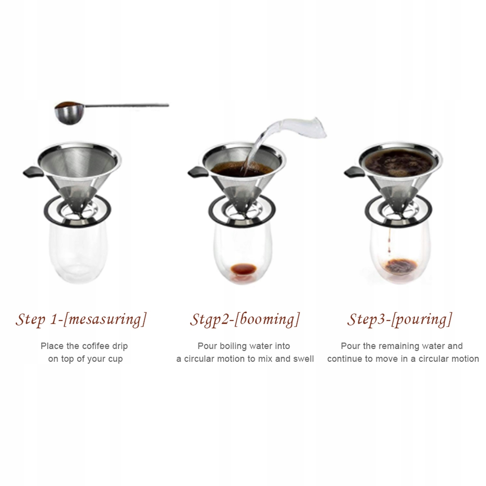 4. [Простота в использовании] Просто налейте горячую воду на фильтр для кофе, затем промойте его и добавьте кофе, медленно влейте горячую воду, дайте кофеварке слить воду через фильтр тонкой очистки, затем снимите капельницу для кофе и наслаждайтесь напитком. .