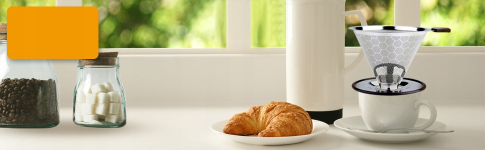 ☕【Специальный дизайн 】Сотовидная конструкция, плотность около 800 меш на квадратный дюйм для обеспечения более мелкой фильтрации частиц. Чтобы получить лучший вкус кофе, мы рекомендуем заваривать кофе среднего помола, используя постоянный фильтр.