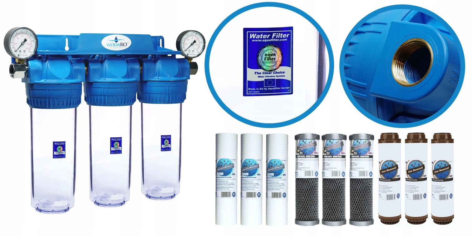 Оригинальный продукт Aquafilter, обычно используемый, среди прочего, в подраковинных и внутритрубных фильтрах, как правило, служит для защиты дорогостоящих картриджей для удаления углерода, умягчения и железа, а также самой водопроводной системы и дорогой арматуры и т. д.