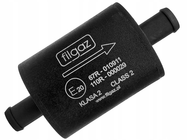 Фильтр одобрен Министерством инфраструктуры для использования в поставках сжиженного нефтяного газа, номер E20 67R-010911 (класс давления 2) и в сжатом природном газе. номер поставки E20 110R-000029 (класс давления 2)