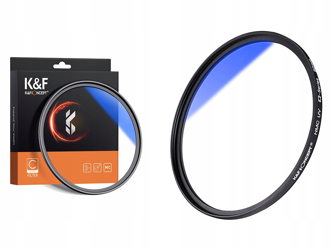 Прочный, оптическое стекло, ультрафиолетовый фильтр, HMC UV серия K&F Concept Blue, изготовлен из японского оптического стекла. Его линза покрыта специальным синим покрытием, которое эффективно уменьшает блики и отражения.