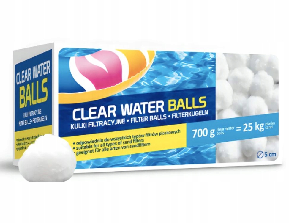 GAMIX CLEAR WATER BALLS - лучший универсальный фильтрующий материал, подходящий для всех типов песочных фильтров. Идеален в качестве замены традиционного фильтрующего песка. Мячи изготовлены из 100 % полиэстера. Специально разработанное микроволокно обеспечивает превосходную фильтрацию, которая в 10 раз эффективнее фильтровального песка. ШАРИКИ ДЛЯ ЧИСТОЙ ВОДЫ GAMIX 700 г заменяют 25 кг песка.