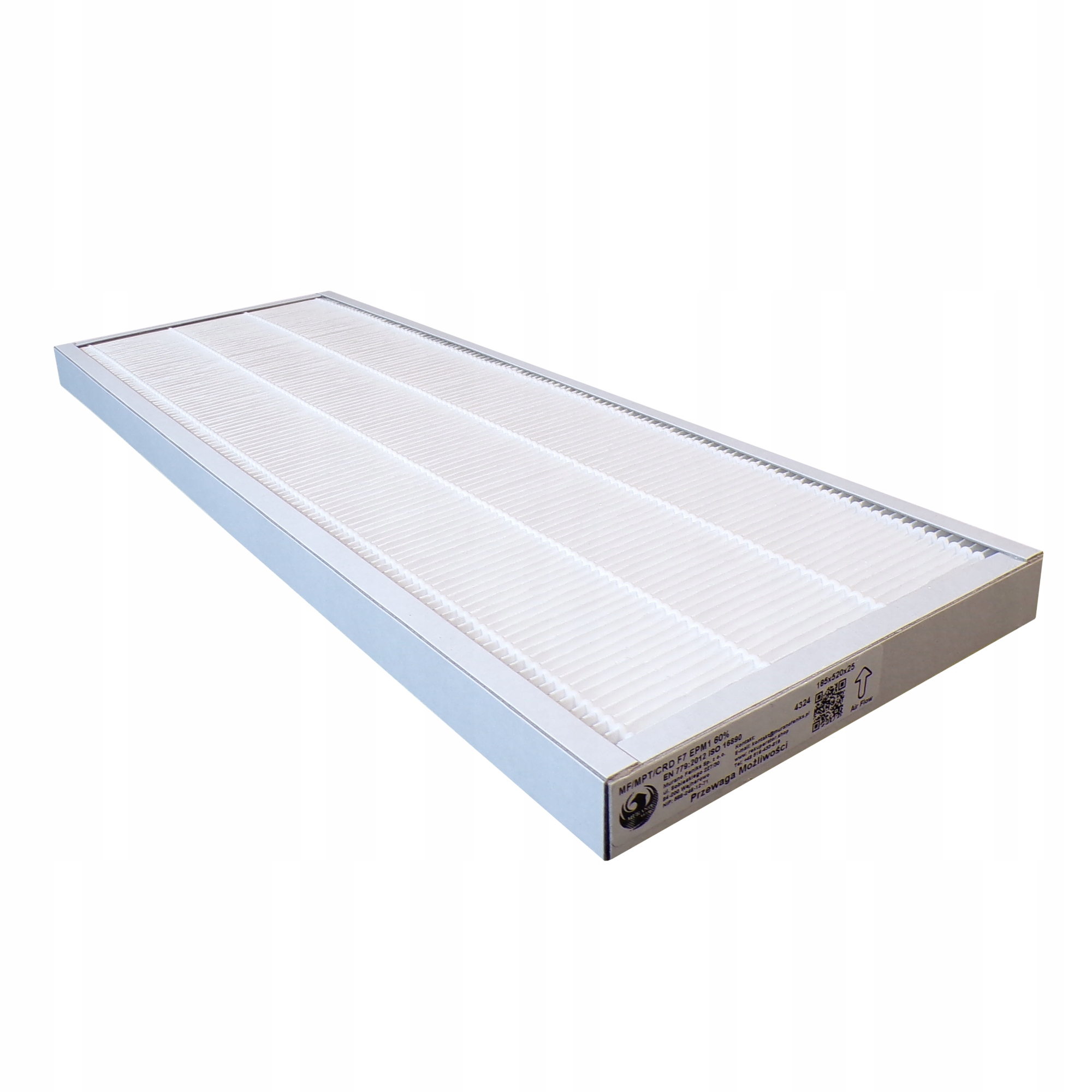 Антисмоговый фильтр с картонным каркасом для тонкой фильтрации в установках механической вентиляции, рекуперации тепла и кондиционирования воздуха. Структура фильтра представляет собой картридж из мелкого складчатого стеклянного микроволокна по технологии минискладок, разделенного термоплавкими сепараторами, позволяющими формировать пластины с жесткой структурой. Затем пакет фильтров плотно вклеивается в картонный корпус. Тонкая гармошка позволяет максимально использовать объем рамы за счет получения наибольшей фильтрующей поверхности, обеспечивая максимальную работу фильтра. Фильтровальная бумага из стекломикроволокон повышенной плотности со стороны выхода воздуха из фильтра обеспечивает очень низкое сопротивление на протяжении всего периода заполнения фильтра загрязнениями. Кассетный фильтр против смога, тонко гофрированный в фильтр-пакеты класса фильтрации F9 с эффективностью ePM1 80% при размерах254x572x25 мм, позволяет улавливать 80% очень мелких частиц из воздуха, т.е. табачного дыма, масляного дыма, бактерий на частицах носителя и других загрязняющих веществ размером менее 1 мкм (микрометра). Мы относим его к категории фильтров тонкой очистки от пыльцы. Таким образом, этот фильтр позволяет осуществлять точную фильтрацию воздуха в системах механической вентиляции с рекуперацией тепла, называемой рекуперацией. Наши фильтры изготовлены из материалов, соответствующих высоким энергетическим классам, что обеспечивает минимально возможное потребление электроэнергии вашим рекуператором.