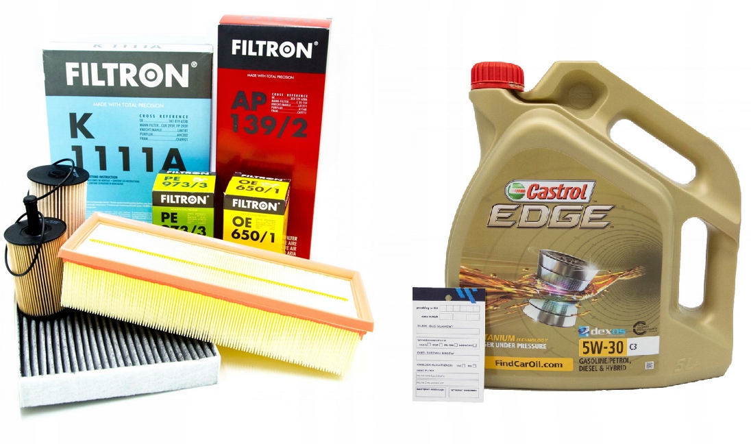 Комплект фильтров VW Passat 1.9TDI 2.0TDI B6 от известной компании Filtron + масло CASTROL 5W-30 C3 EDGE 5L.