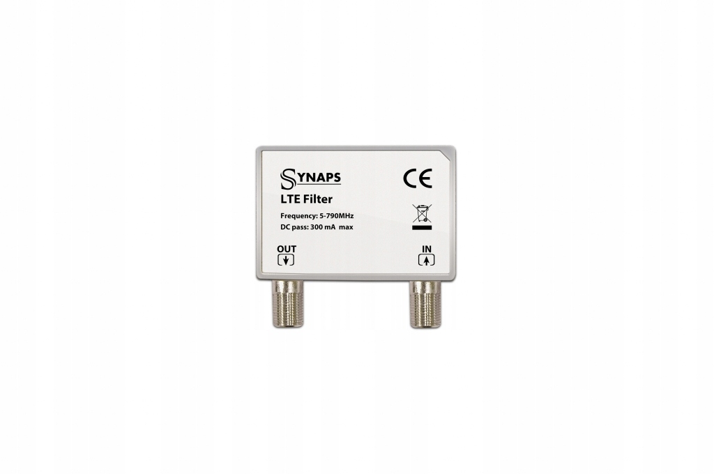 Внешний фильтр LTE от Synaps для использования в установке антенны DVB-T для ослабления диапазона LTE 790–860 МГц.
