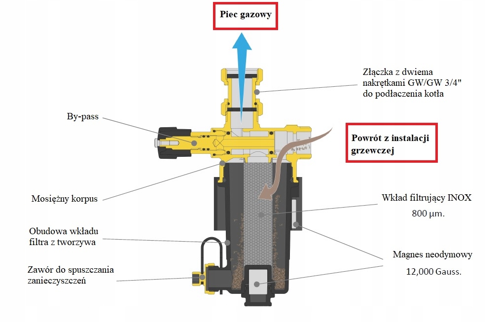 FILTR MAGNETYCZNY SEPARATOR ZANIECZYSZCZEŃ BY-PASS
