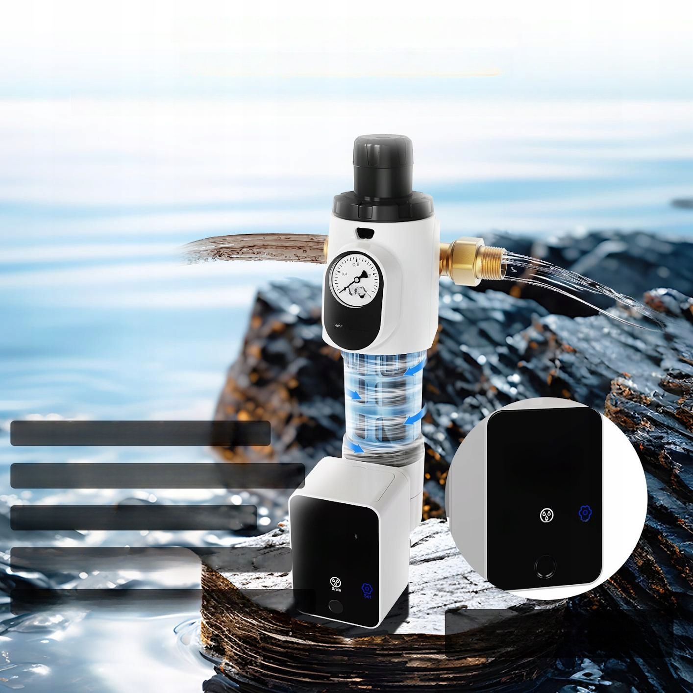 Автоматическая обратная промывка ➡️ Гидродинамическая очистка с двумя турбинами.
