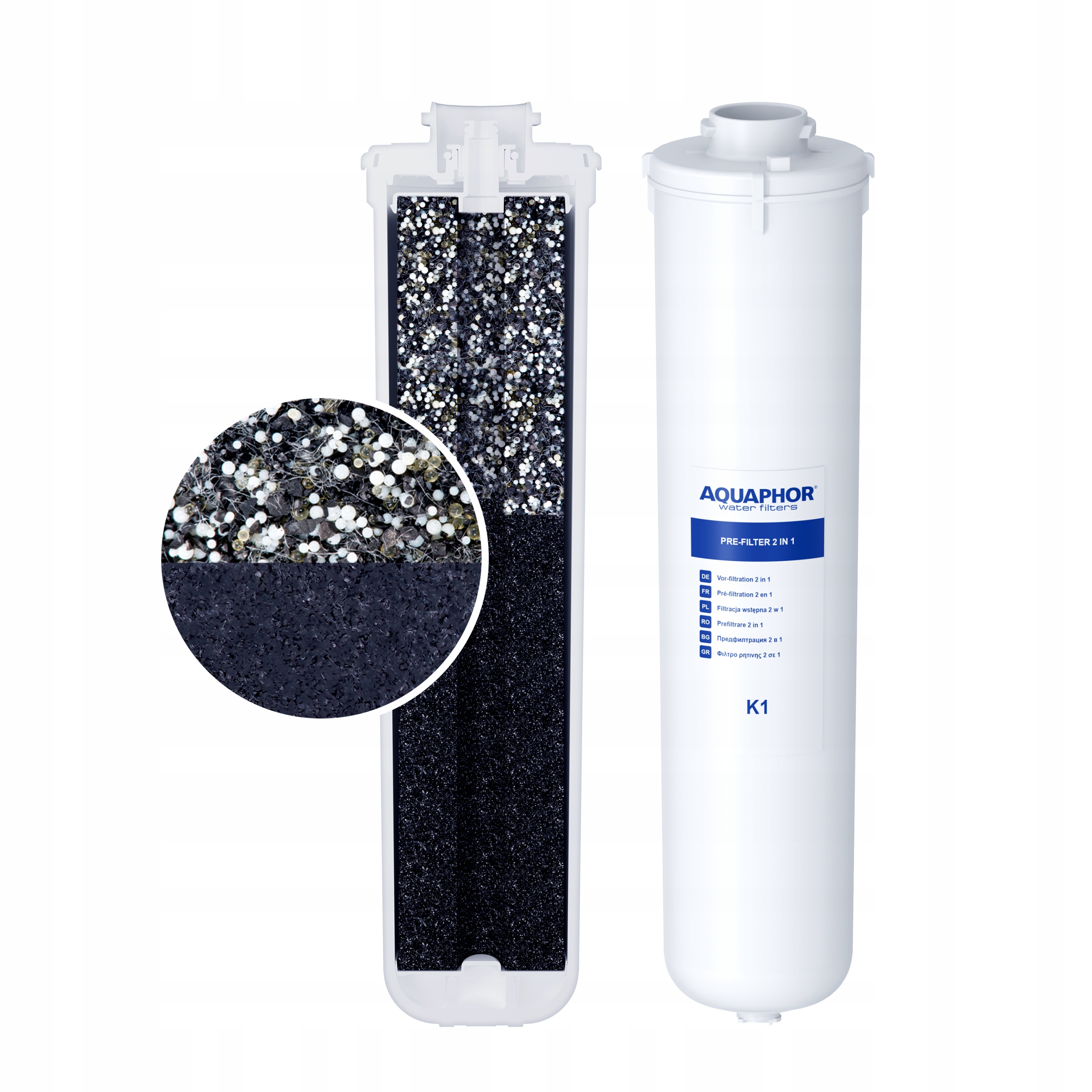 - Комбинируя угольные блоки с АКВАЛЕНОМ, фильтр удаляет примеси размером более 3 микрон.