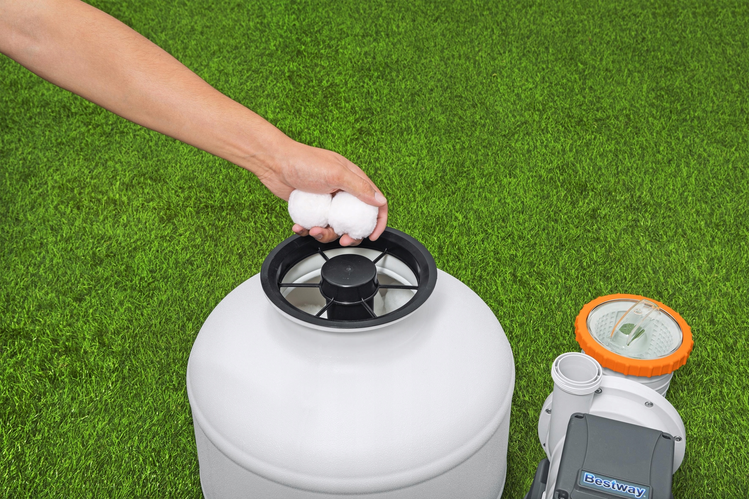 Фильтр также прекрасно работает с шариками фильтра Polysphere ™ Bestway.