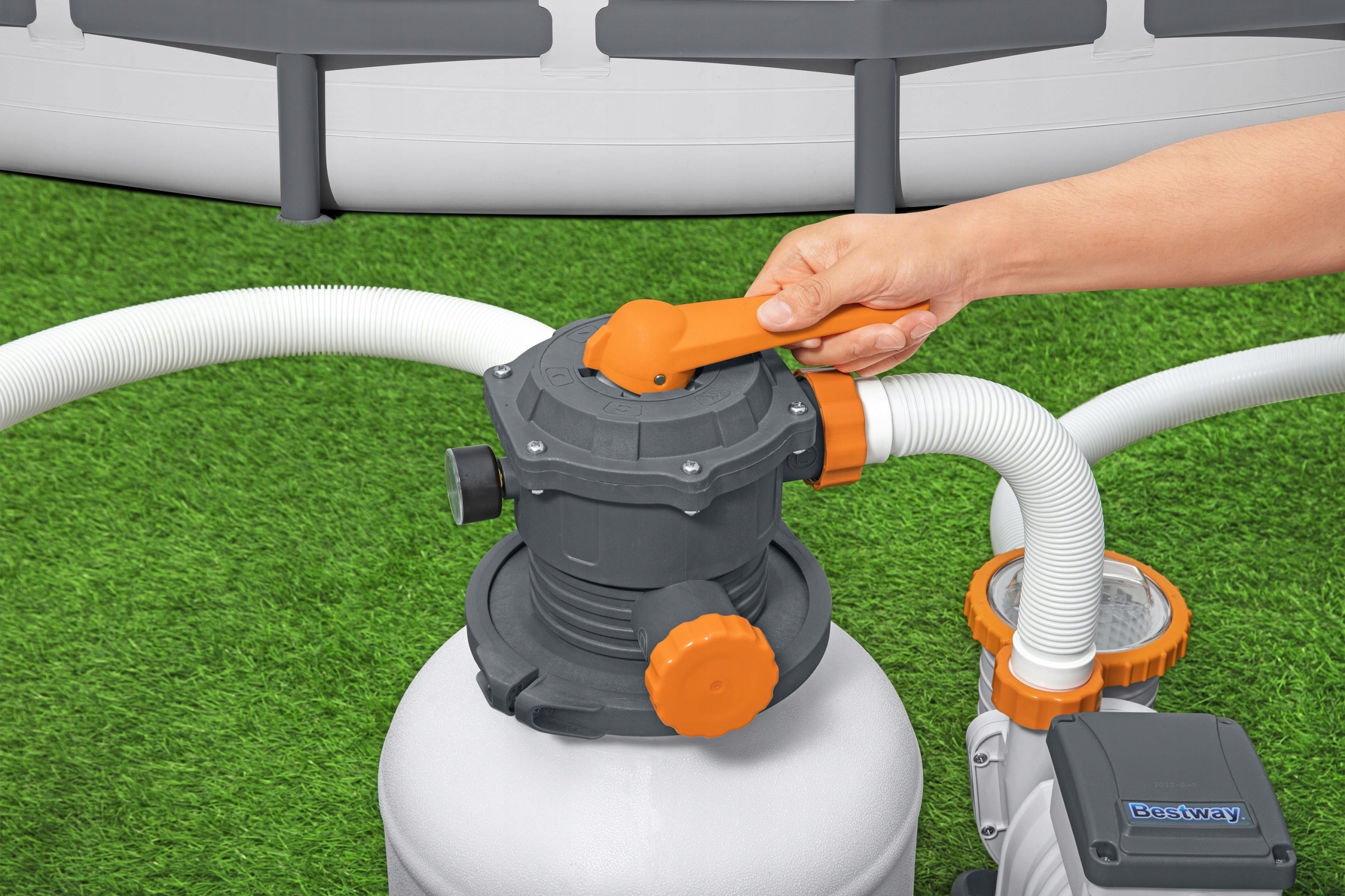 Насос песчаного фильтра Bestway® является высокоэффективным и экологически чистым способом поддерживать чистую воду через грунт. Это прибыльное решение, потому что насос использует песок кремнеземам вместо традиционной вставки фильтра. В то время как традиционные картриджи должны заменяться каждые 2 недели, кремнезый песок достаточно на 3 года. Песок улавливает грязь и примеси, но предварительно фильтерный резервуар фильтрует большие вещи, благодаря тому, что насос будет длиться дольше. Фильтр также имеет диспенсер ChemConnect, который поддерживает чистую, полезную воду в бассейне, обеспечивая стабильные уровни хлора, который равномерно разбросан вокруг бассейна. Продукт собирается на заводе и совместим с большинством наземных бассейнов с емкостью от 1100-54500 л, поскольку он оснащен адаптерами для клапанов для бассейна с внешним диаметром 3,8 см.