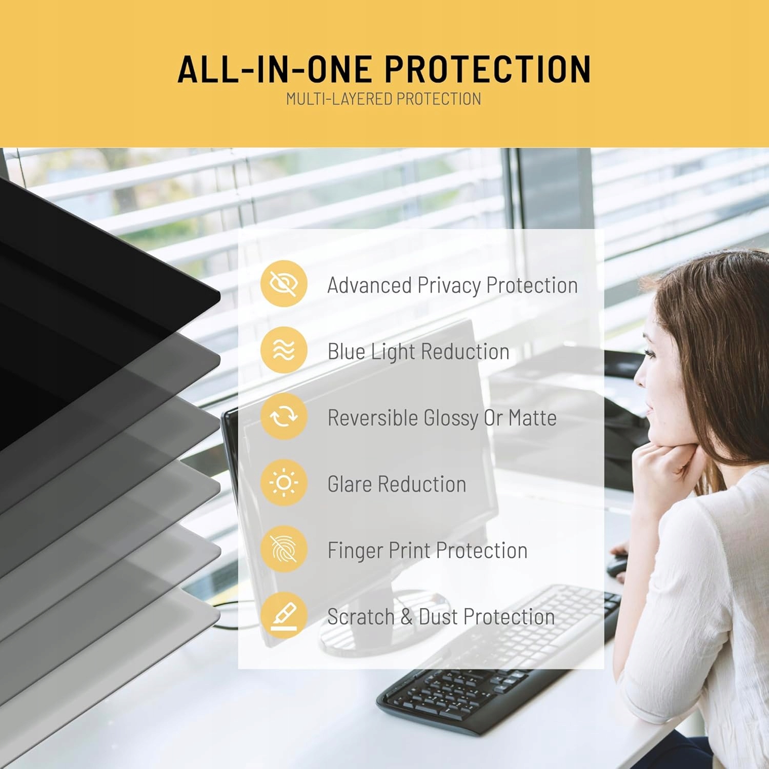 • Премиум-фильтр конфиденциальности и блокировки синего света 2-в-1: предназначен для защиты конфиденциальной информации на экране монитора и блокирования 90 % вредного излучения синего света. Наслаждайтесь свободой от бессонницы, дискомфорта для глаз и головных болей, сохраняя при этом конфиденциальность экрана.
