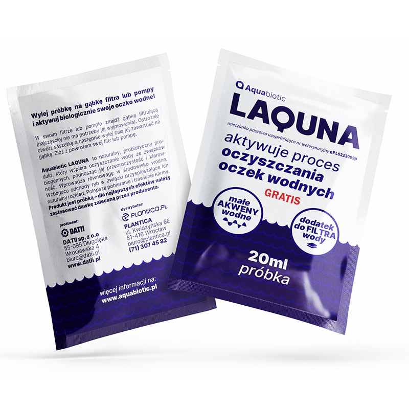 Аквабиотик LAQUNA - натуральный пробиотический продукт, способствующий очистке воду из биогенных соединений, повышая ее прозрачность и прозрачность.