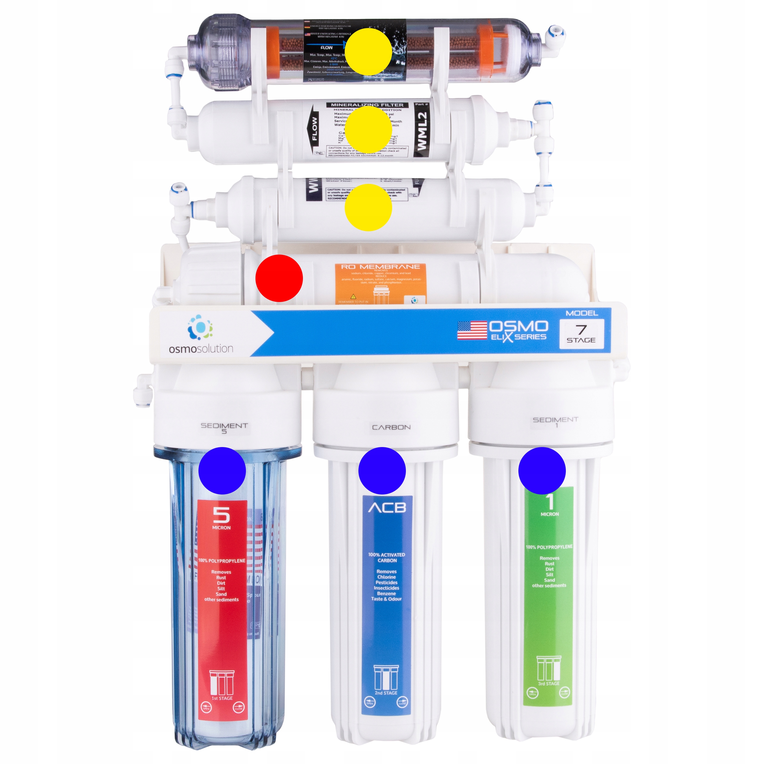Вода, проходящая через систему, подвергается 7-ступенчатой фильтрации, которая состоит из: