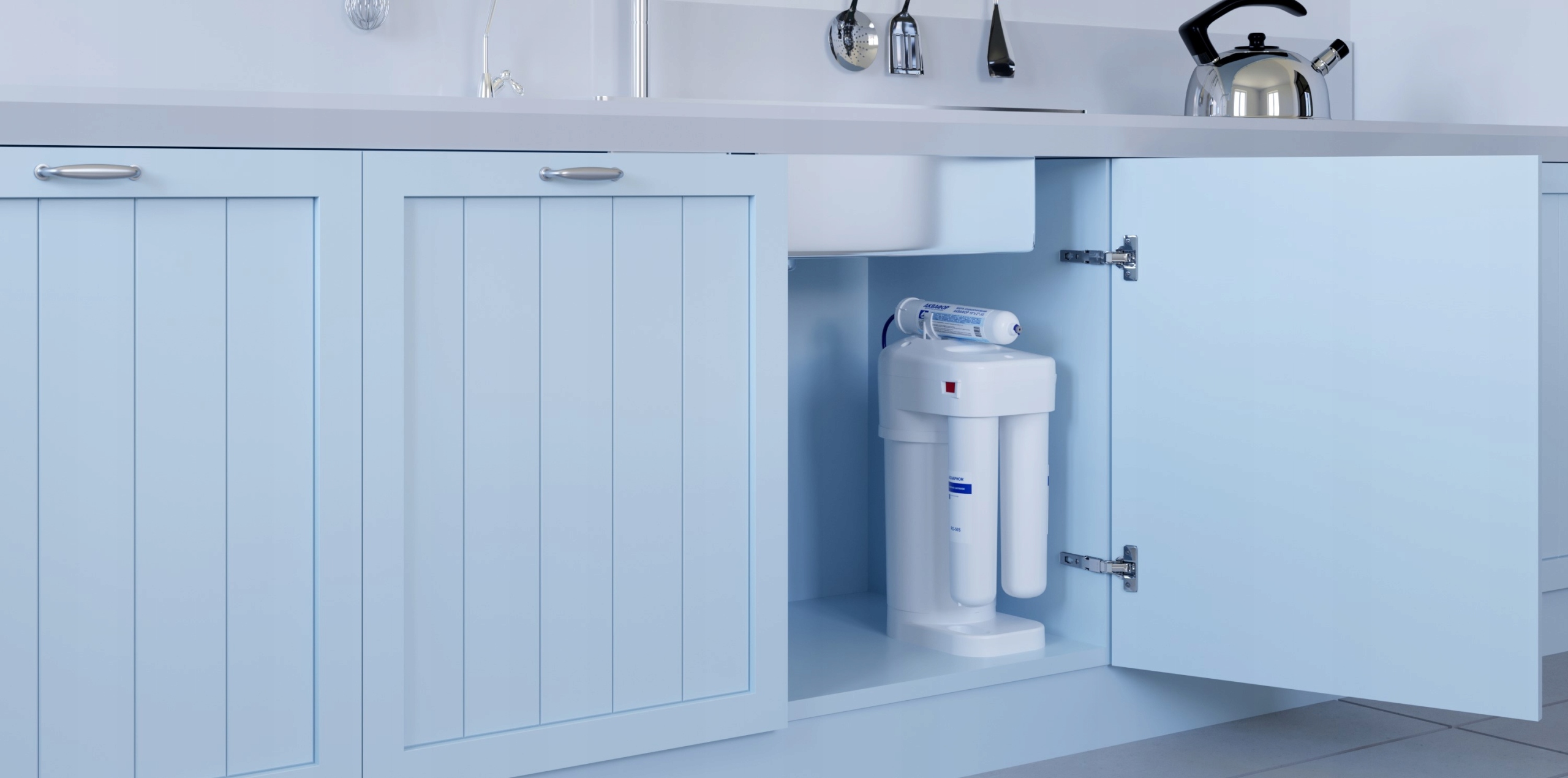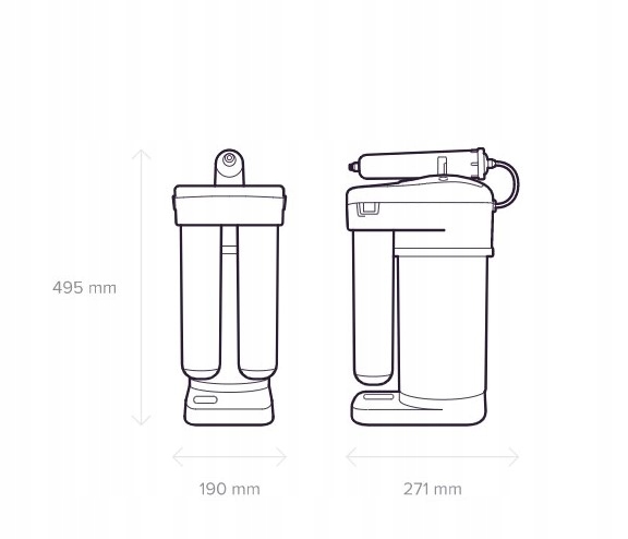 Компактная система обратного осмоса используется для получения воды высокого качества. Фильтр состоит из набора картриджей, охватывающих все ступени фильтрации, и бака для фильтрованной воды объемом 5 литров.