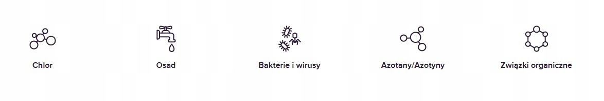 Удаляет из водопроводной воды все загрязнения, включая хлор, органические соединения, тяжелые металлы, нитраты и нитриты, жесткость, бактерии и вирусы.
