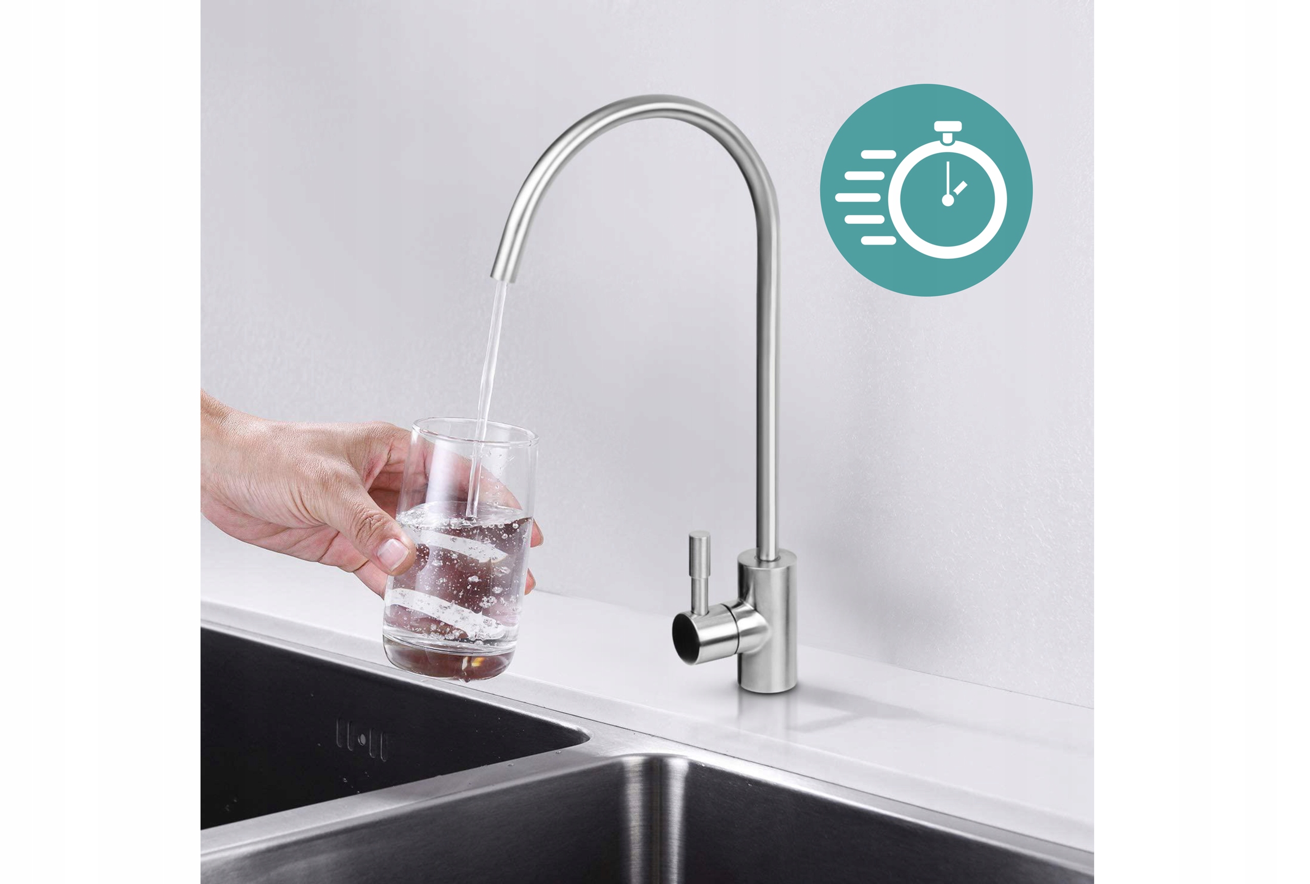Подходит ко всем кухонным фильтрам. Смеситель имеет прочную керамическую головку. Он изготовлен из материалов высочайшего качества, что гарантирует комфорт использования и надежность. Очень прост в установке, элегантно смотрится рядом со стандартными кухонными смесителями. В комплект входит набор аксессуаров для подключения.