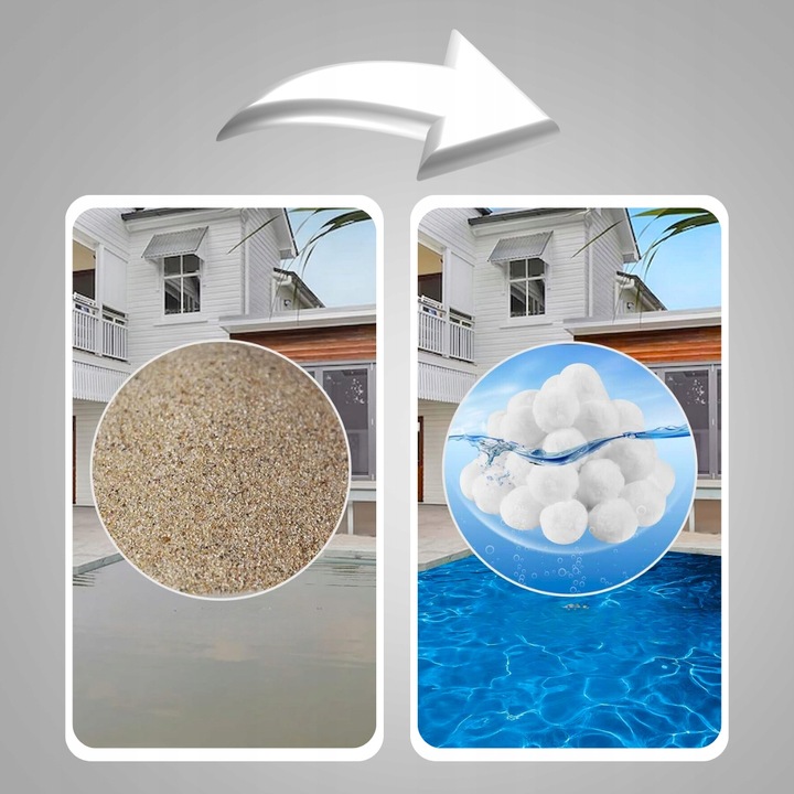 ✔lasty и удобство транспорта из -за их легкостью, фильтровать шарики легко переносить, что облегчает перевозку их в место установки и манипуляции во время обслуживания системы фильтров бассейна. Удаление загрязнения ✔ Фильтровые шарики характеризуются превосходными свойствами фильтра, что позволяет им эффективно удалять все загрязнение из воды бассейна. Благодаря этому они обеспечивают чистоту и ясность воды, что имеет решающее значение для поддержания достаточного качества воды в бассейне.
