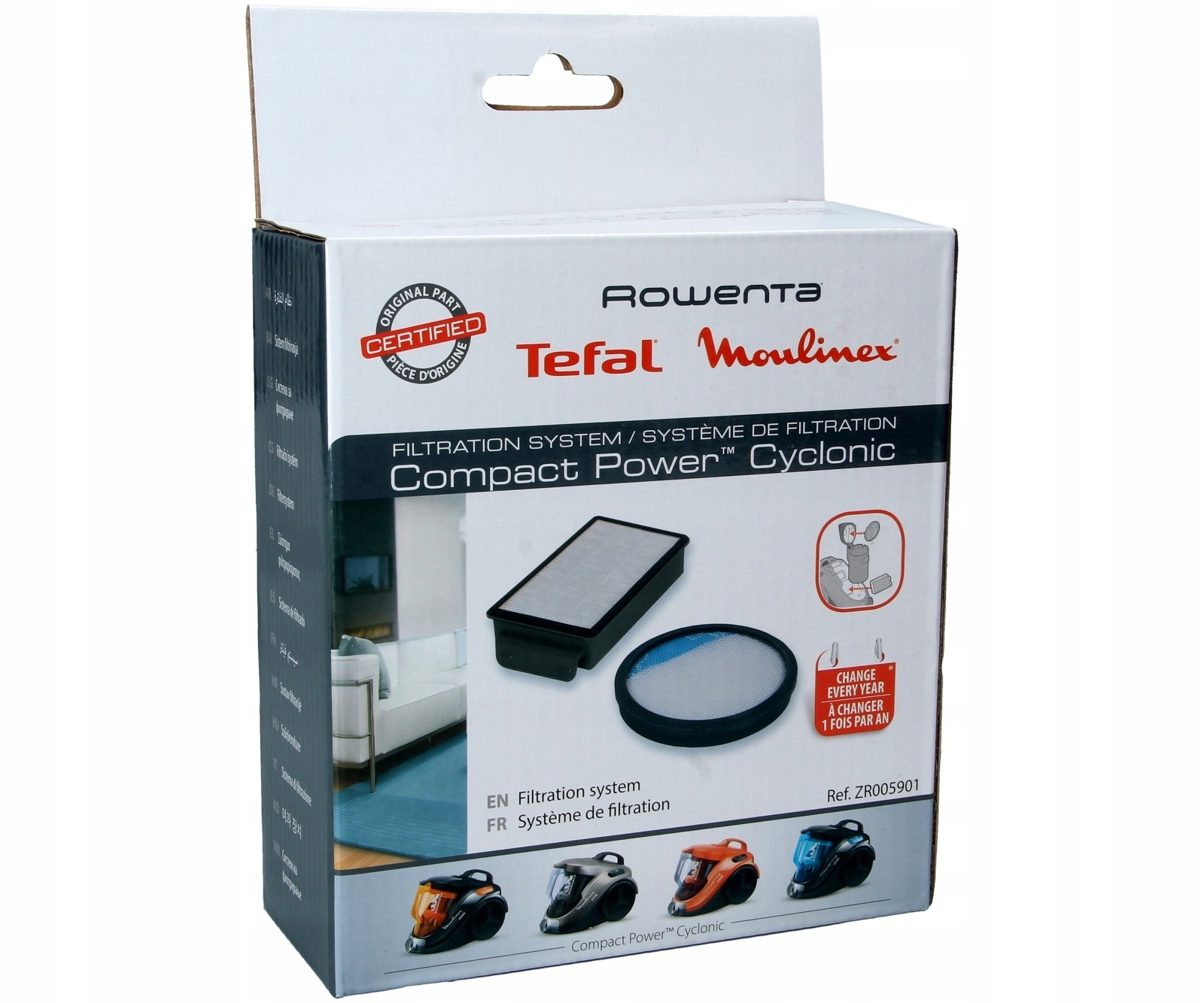 ZR005901 Компактные мощные циклонные фильтры очищают воздух, задерживая большинство загрязняющих веществ. Они поглощают мельчайшие частицы пыли и исключают появление аллергенов и микрозагрязнителей. Использование фильтров пылесоса гарантирует поддержание соответствующих параметров фильтрации и потока отработанного воздуха. Фильтры обеспечивают длительную и безотказную работу пылесоса.