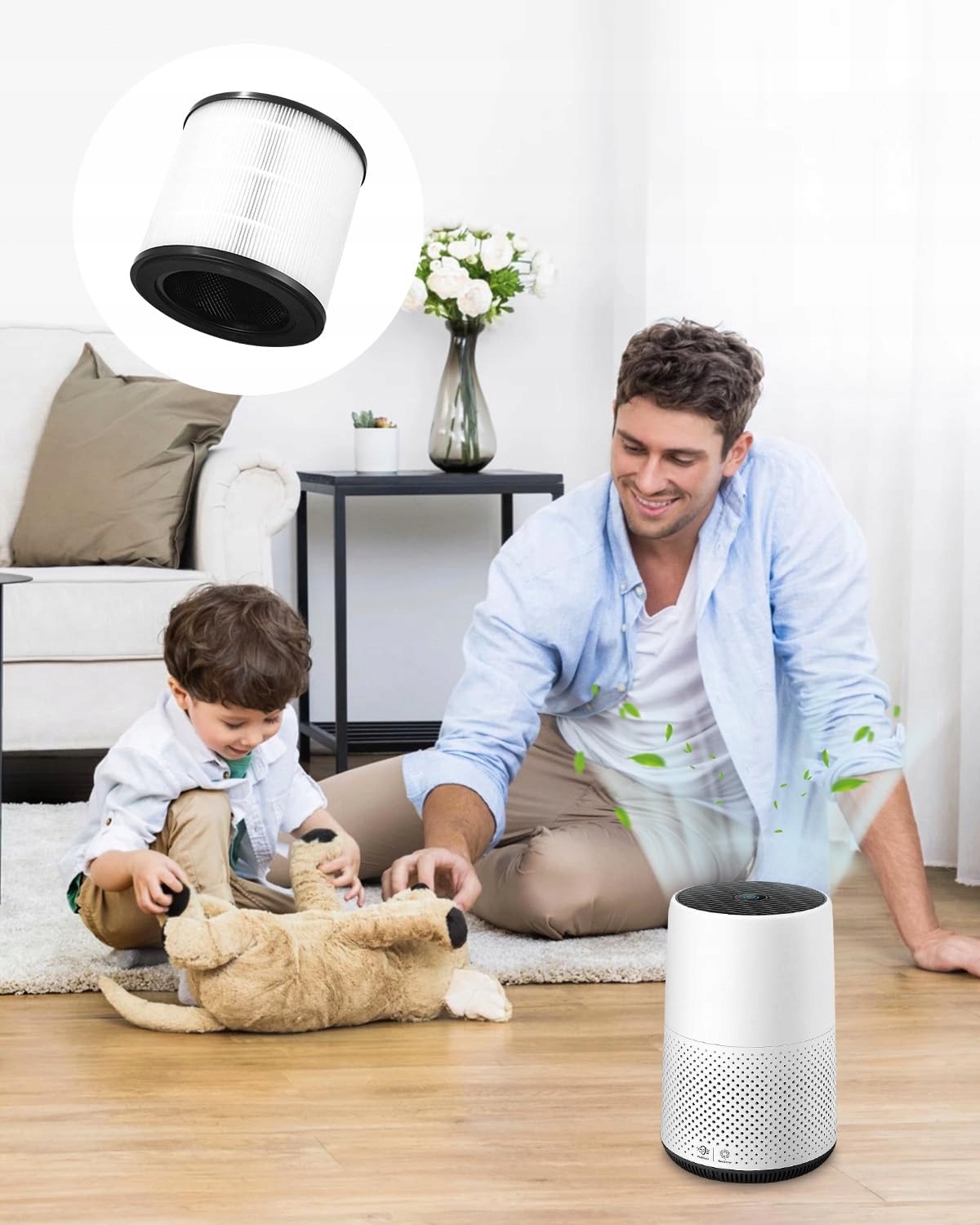 Установка нового фильтра проста и интуитивно понятна. После снятия старого фильтра новый можно установить без необходимости выполнения сложных операций. Очиститель воздуха готов к немедленному использованию.