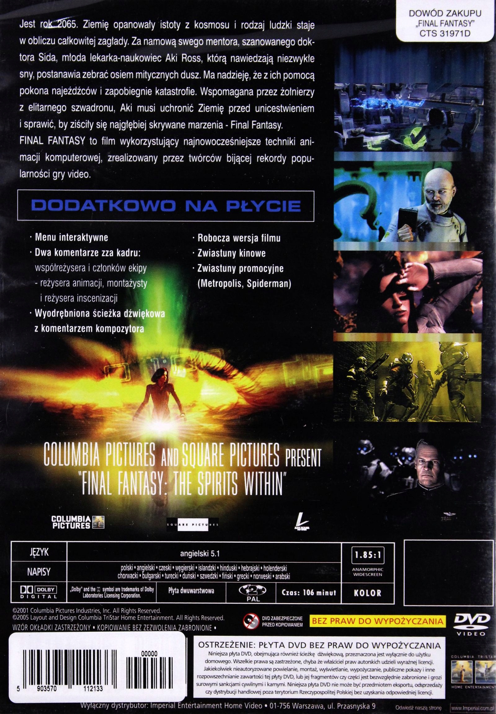 Оплачивая «FINAL FANTASY [DVD]», вы можете быть уверены, что данный товар из каталога «Аниме» будет доставлен из Польши и проверен на целостность. В цене товара, указанной на сайте, учтена доставка из Польши. Внимание!!! Товары для Евросоюза, согласно законодательству стран Евросоюза, могут отличаться упаковкой или наполнением.