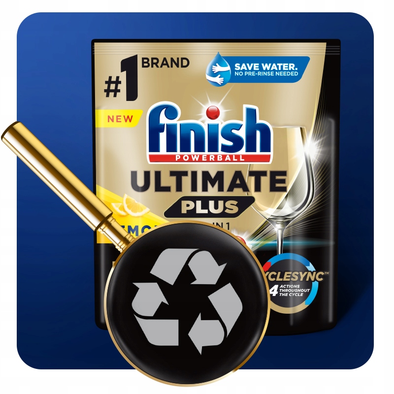 Finish Ultimate Plus обеспечивает идеальную чистку и бриллиантовый блеск с первого использования каждый раз. Это наша первая капсула с технологией CYCLESYNC™, которая позволяет высвобождать нужный ингредиент* для работы в нужное время во время цикла стирки.