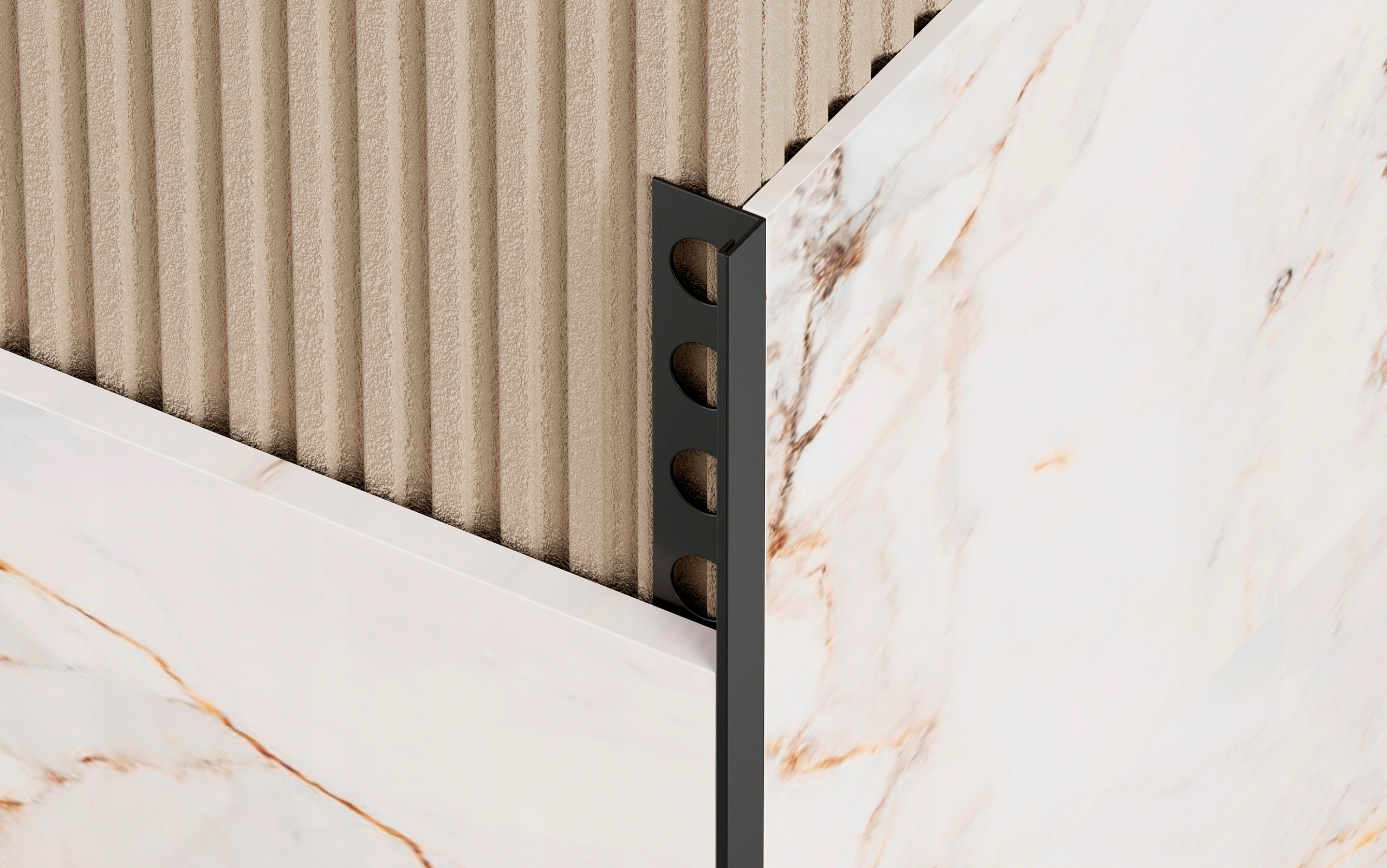 ОТДЕЛОЧНЫЕ ПОЛОСКИ L-ТИПА характеризуются квадратной формой, которая четко и элегантно закрывает внешние углы керамической плитки.