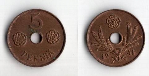 ФИНЛЯНДИЯ 5 ПЕННИЙ 1941 ГОДА