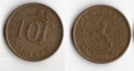 ФИНЛЯНДИЯ 1953 10 МАРККАА