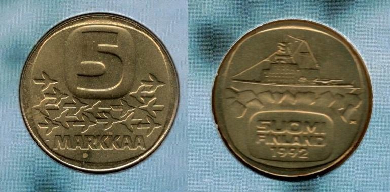 ФИНЛЯНДИЯ 1992 ГОДА 5 МАРККАА ИЗ НАБОРА ВАРИАЦИЯ 2