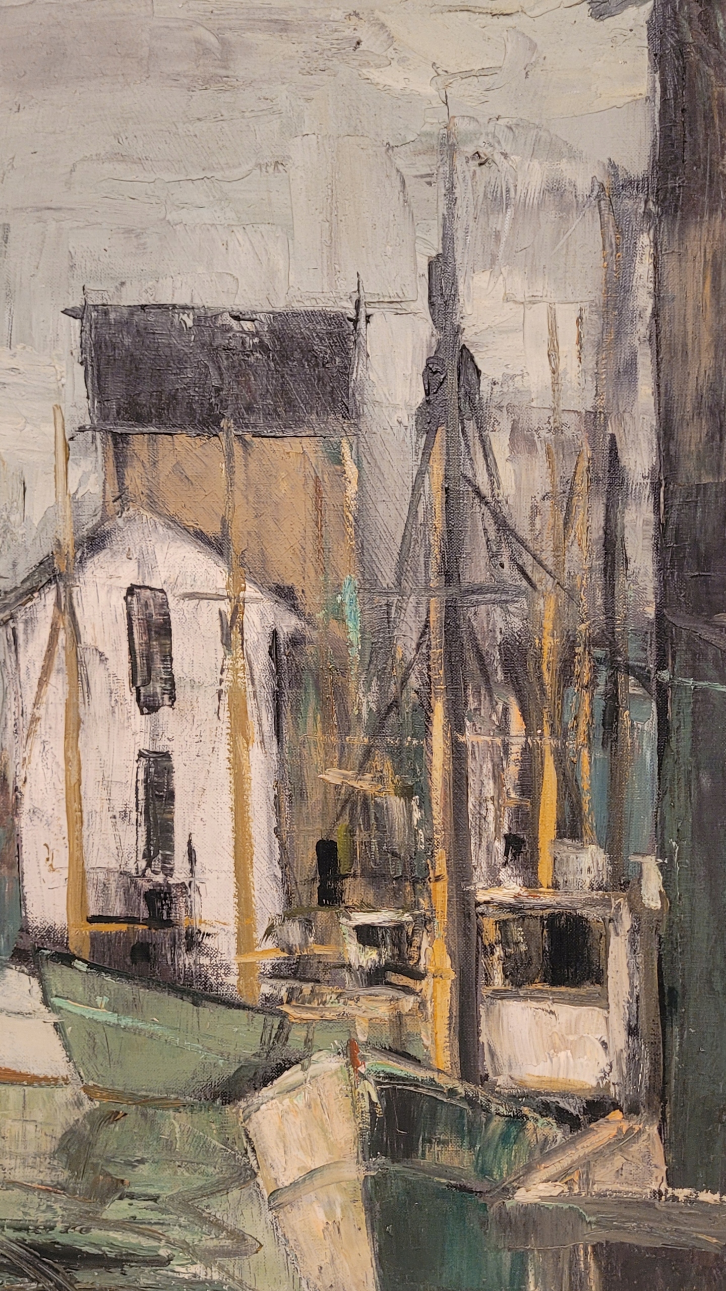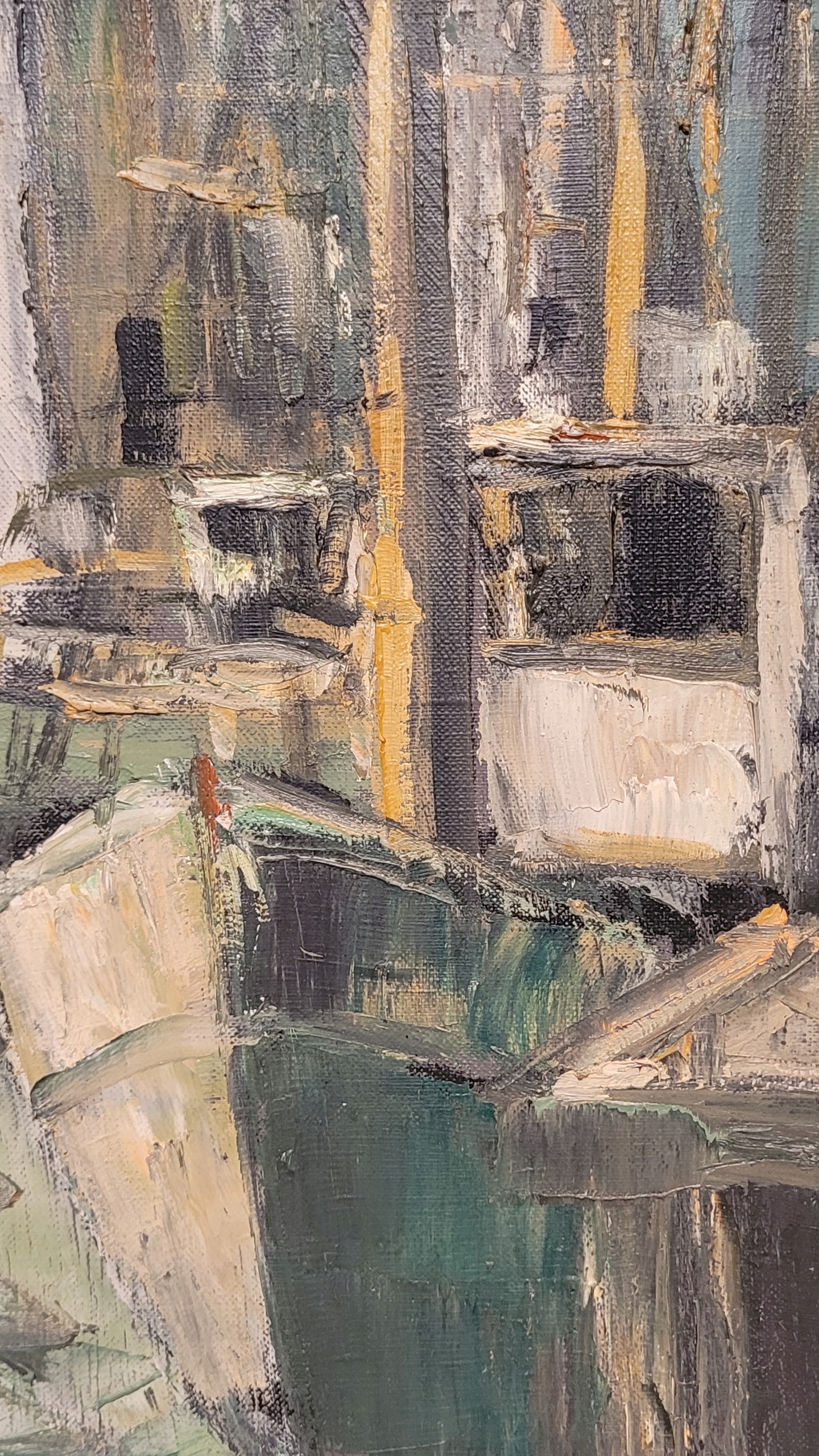 Предмет продажи — красивая старинная картина маслом «ЛОДКИ В ПОРТУ».