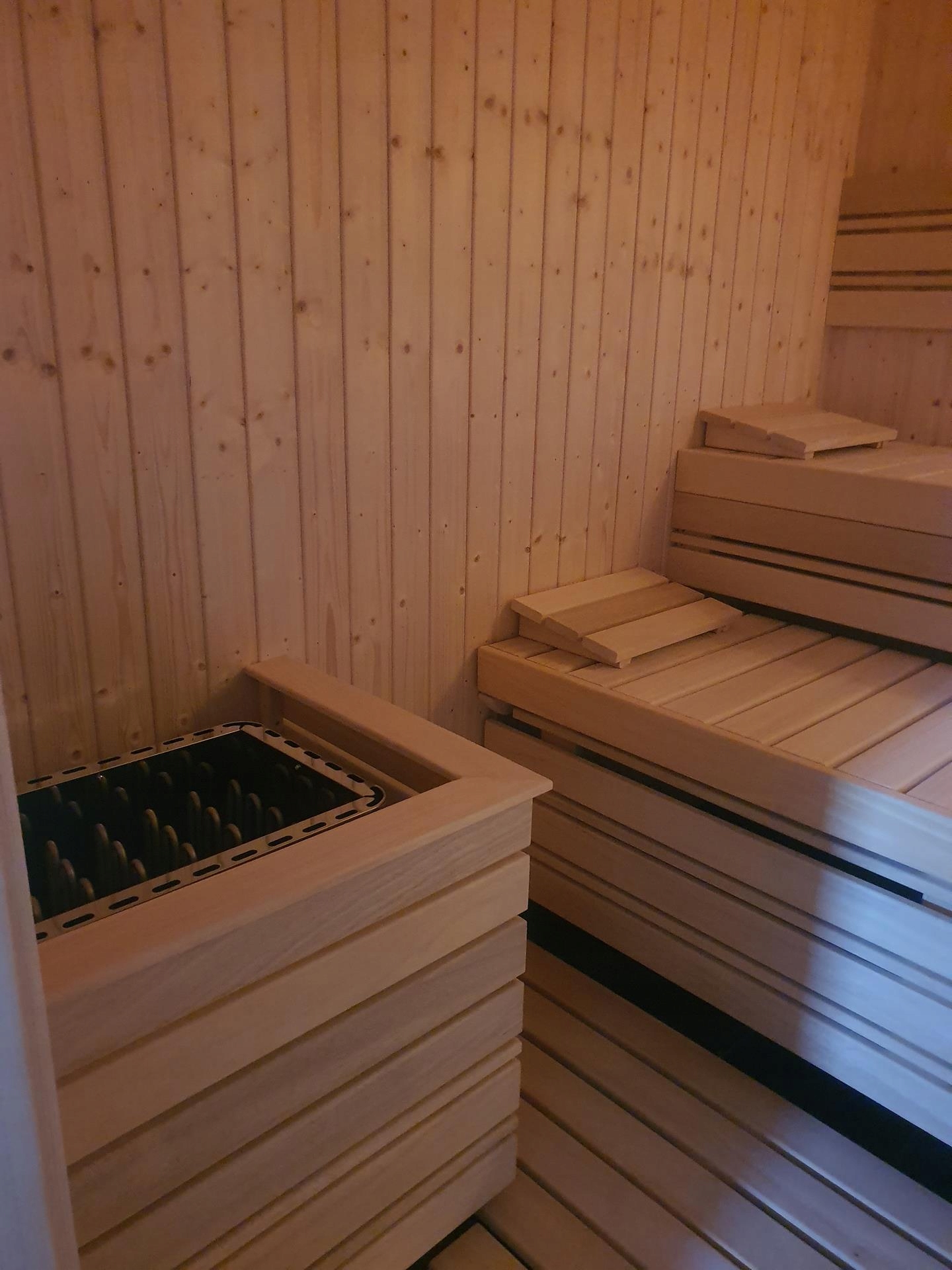 Большая каменная камера и шесть нагревательных элементов ( каменки) равномерно и эффективно прогреют каждую сауну.