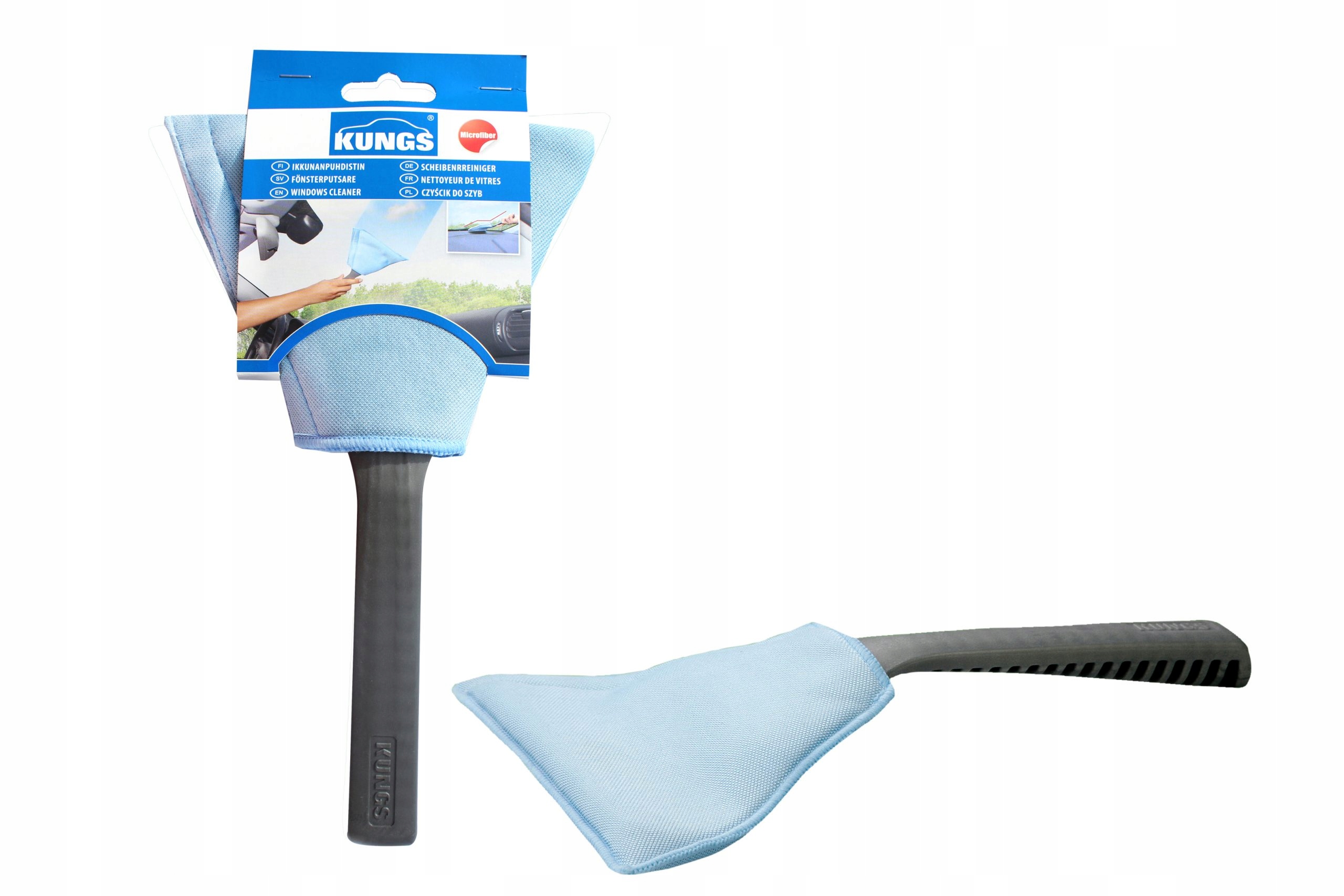 Очиститель окон предназначен для использования в самых ограниченных пространствах, например, в пространстве между приборной панелью и лобовым стеклом. Его размер позволяет хранить его, например, в дверном кармане. Съемный чехол из микрофибры можно стирать в машине. Очиститель кабины – ключевой продукт компании Kungs, разработанный и изготовленный в Финляндии.