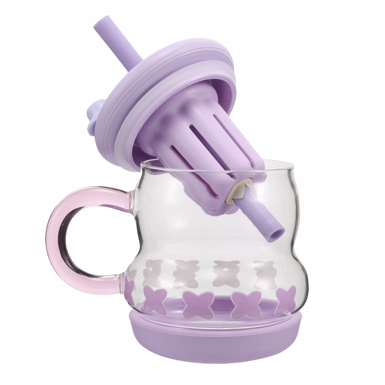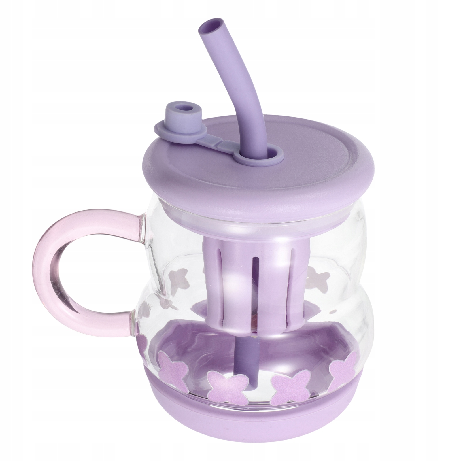 ФИОЛЕТОВАЯ СТЕКЛЯННАЯ КРУЖКА С СОЛОМОЧКОЙ И РУЧКОЙ ДЛЯ ПУТЕШЕСТВИЙ И ДЕТЕЙ