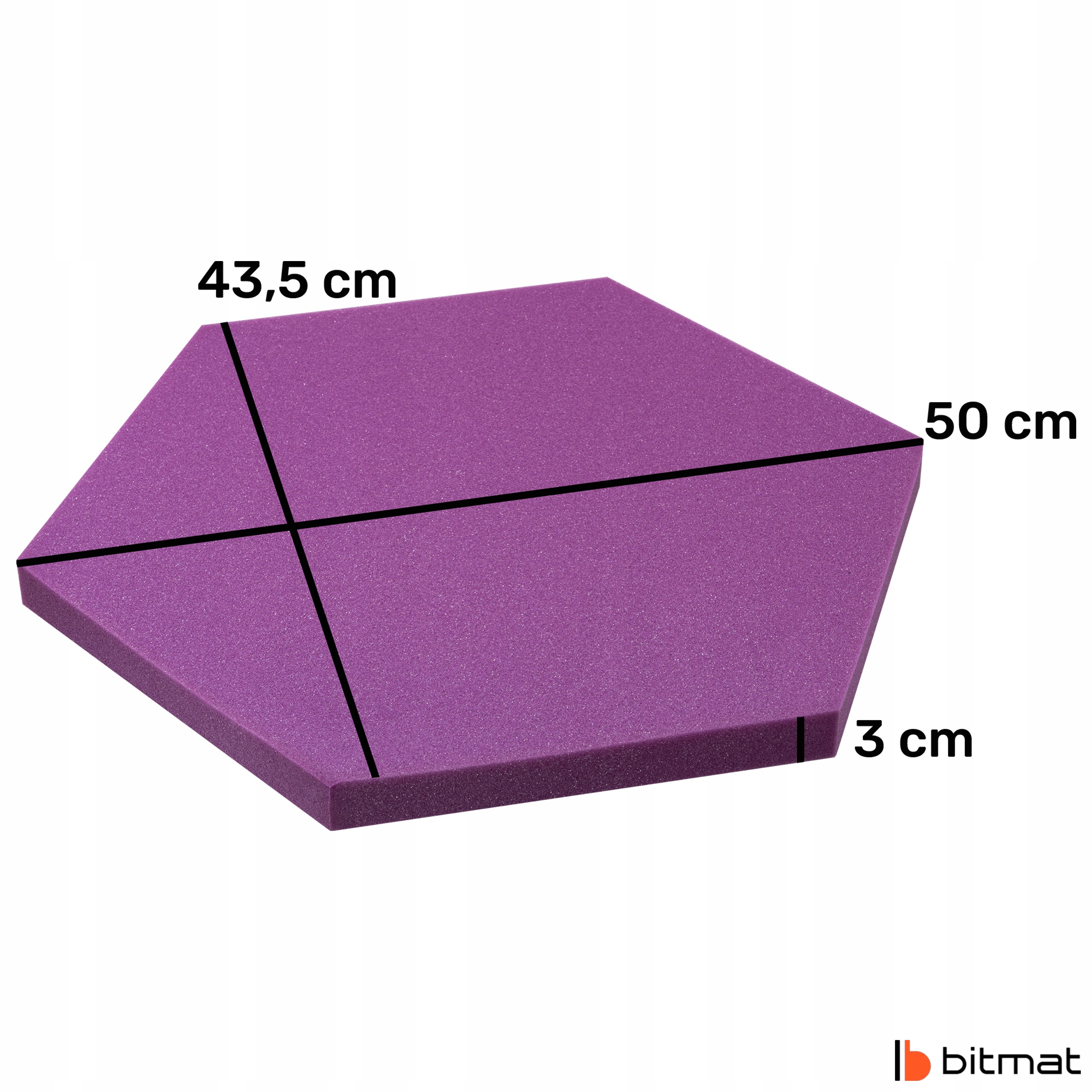 Шестиугольник фиолетового цвета незаменим в современной композиции. Это панно – это, прежде всего, уникальный орнамент и украшение, придающее помещению глубокий интригующий фиолетовый цвет. Модульная шестиугольная форма идеально подходит для создания художественных трехмерных настенных композиций. Панель изготовлена ​​из высококачественного пенополиуретана Bitmat AF-25, а это означает, что, помимо своей эстетической функции, она также эффективно снижает эхо и улучшает акустику.