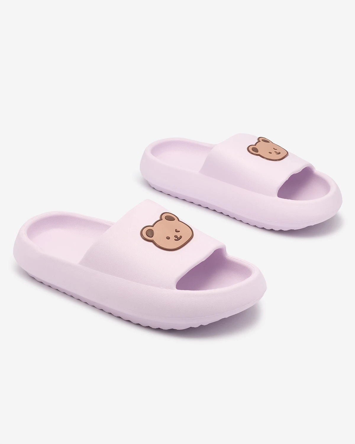 Отличные женские резиновые шлепанцы на плоской подошве, ремешок украшен милым плюшевым мишкой. Идеальный выбор для отдыха!