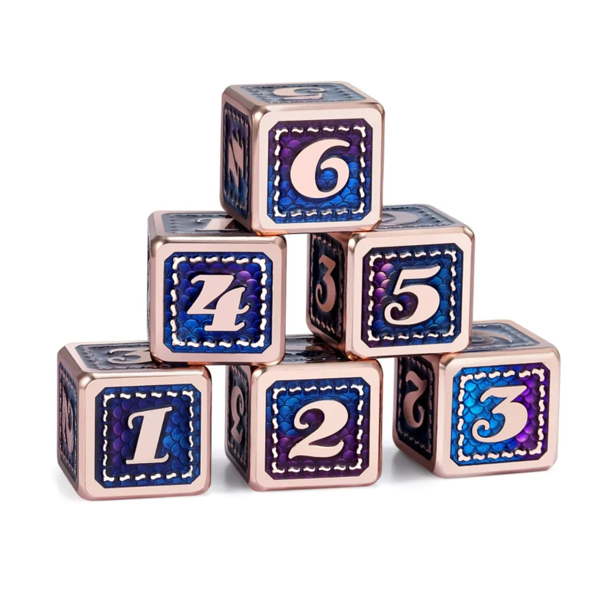 МЕТАЛЛИЧЕСКИЕ КУБИКИ С ФИОЛЕТОВЫМИ ШКАЛАМИ D6, ШЕСТИГРАННЫЕ КУБИ РПГ, 1,6 СМ