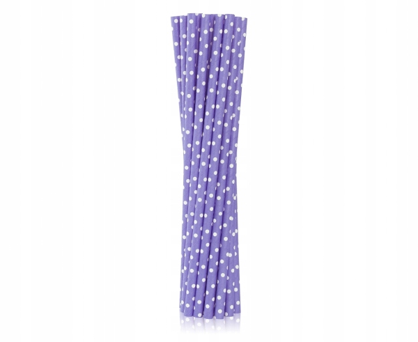Фиолетовые бумажные трубочки в белый горошек.