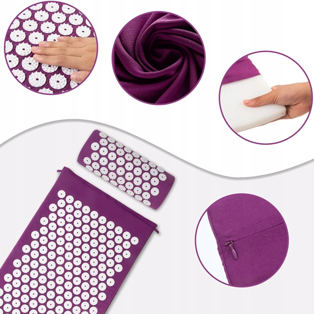 КОВРИК ДЛЯ АКУПРЕССИИ ФИОЛЕТОВЫЙ 62X38СМ С ПОДУШКОЙ ДЛЯ Иглоукалывания и йоги