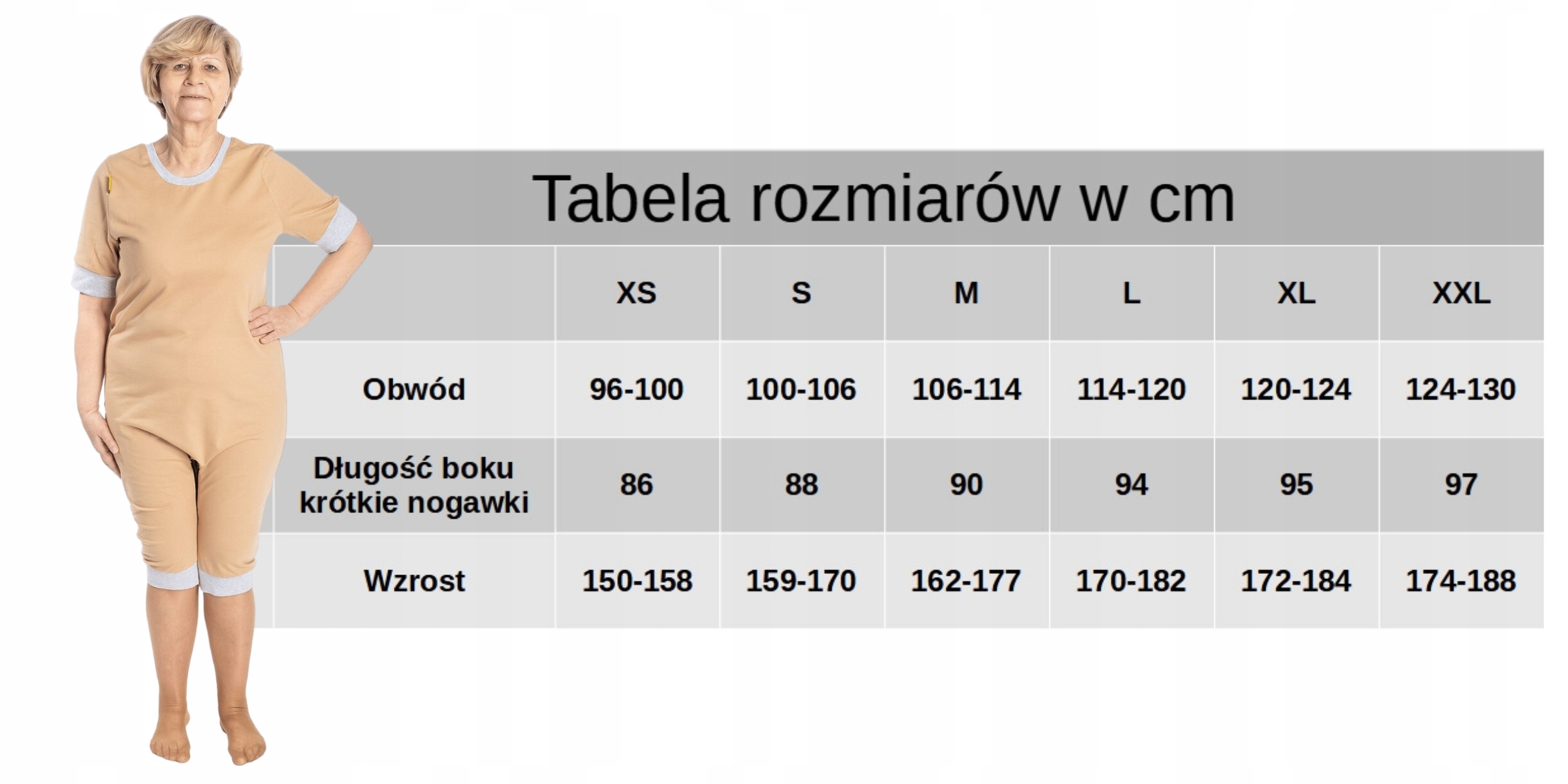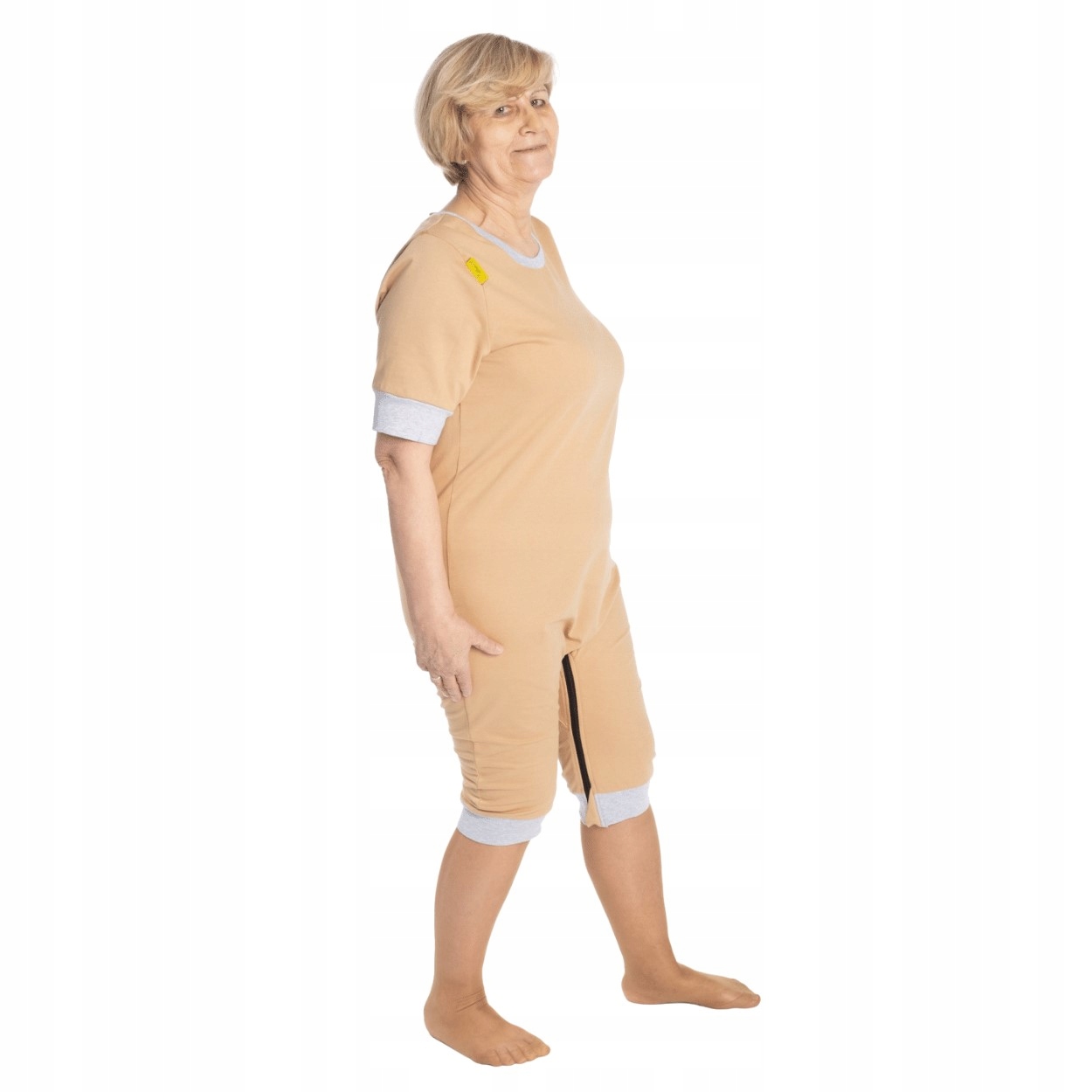 Боди для пожилых людей - короткие рукава, молния сзади, короткие штанины, молния в промежности с манжетами