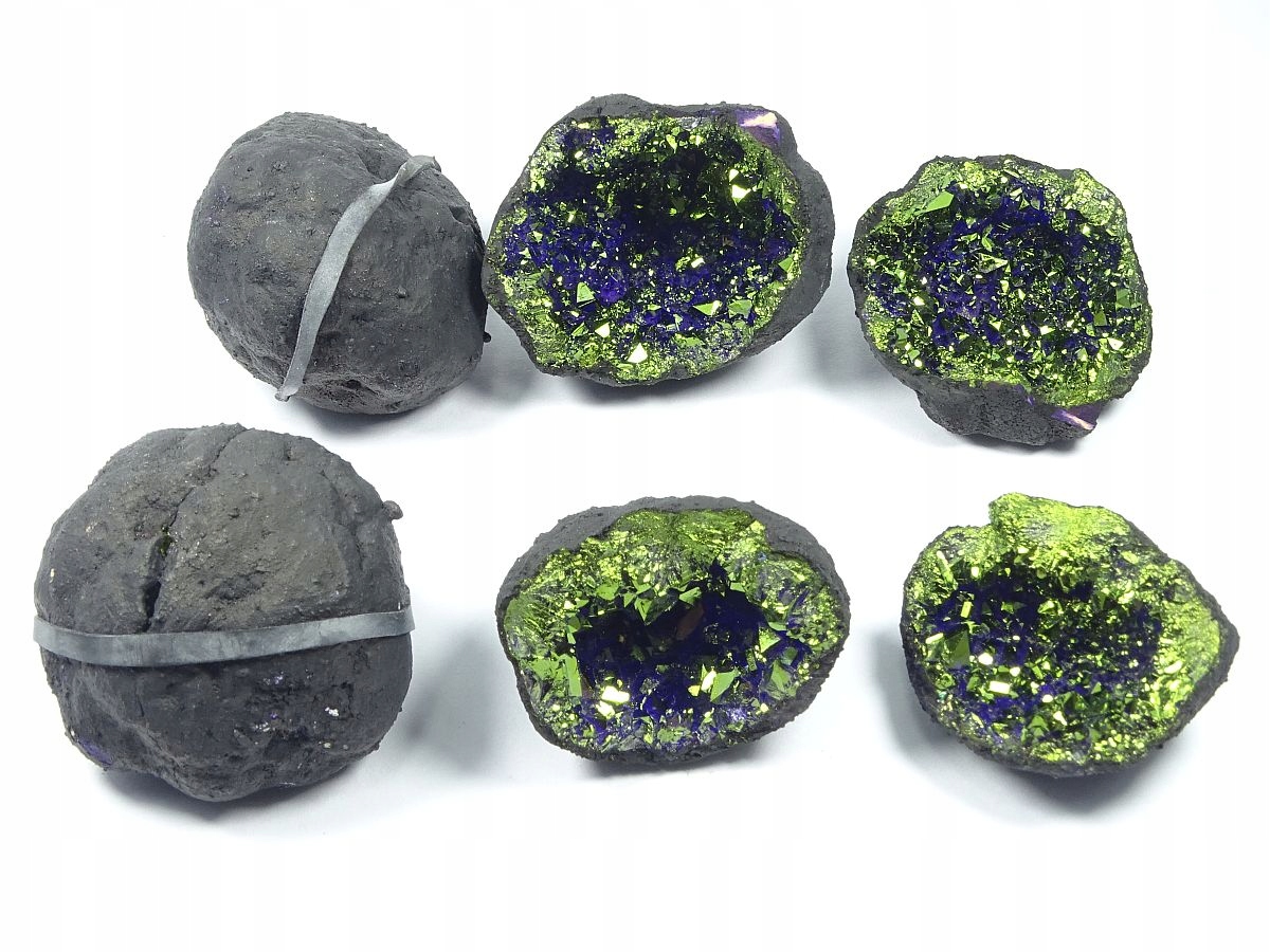 Предметом аукциона являются две половинки. Покупатель получает всю жеоду, связанную резинкой.