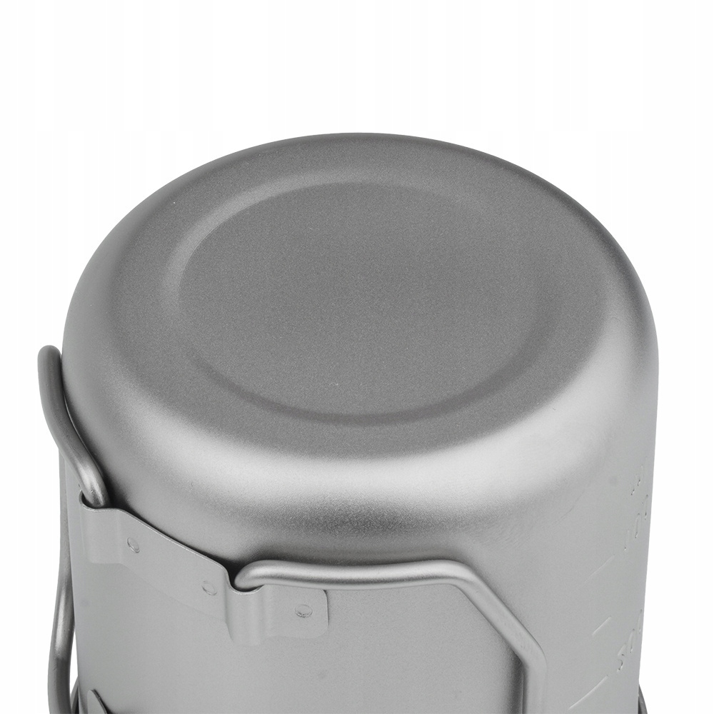 Туристическая кружка титана, очень легкая и чрезвычайно прочная, оснащенная складывающейся ручкой и мерой громкости на боковой части, разборчивой изнутри