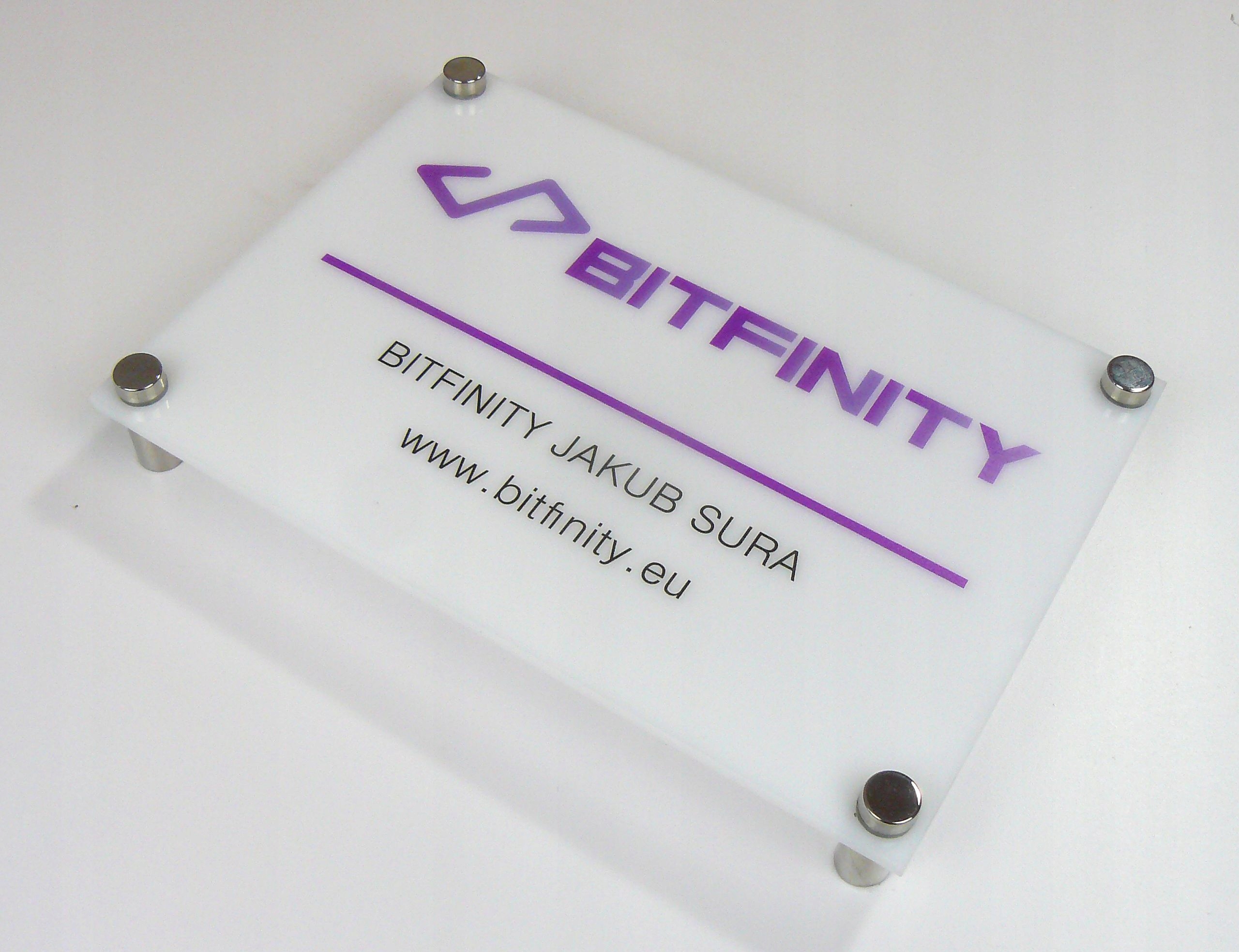Вывеска компании выполнена инновационным методом УФ-печати на высококачественном молочном плексигласе толщина 4 мм. Пластина имеет отверстия и оснащена четырьмя проставками для облегчения ее крепления. Все это создает очень элегантную композицию.