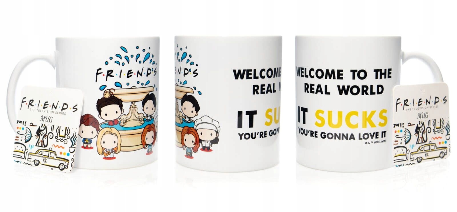 Оригинальная чашка с друзьями, сделанная из высококачественной керамики. Графика на кружке долговечна и ясна. Кружка имеет сертификат и подходит для контакта с едой. Упакован в белую картонную коробку. Предназначен для ручного стирки