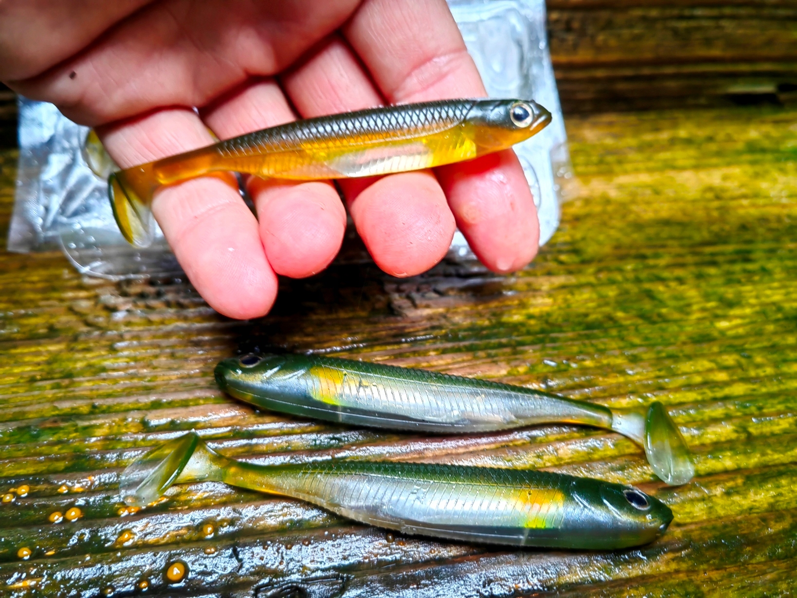 Специально разработанный, реалистично работающий хвост в сочетании с точным воспроизведением маленькой рыбки прекрасно провоцирует хищника на атаку. Кроме того, полоска серебра, помещенная внутрь приманки, имитирует вспышку убегающей добычи, тем самым усиливая агрессию и ускоряя атаку. Приманки изготовлены из экологических материалов, как и в Японии.