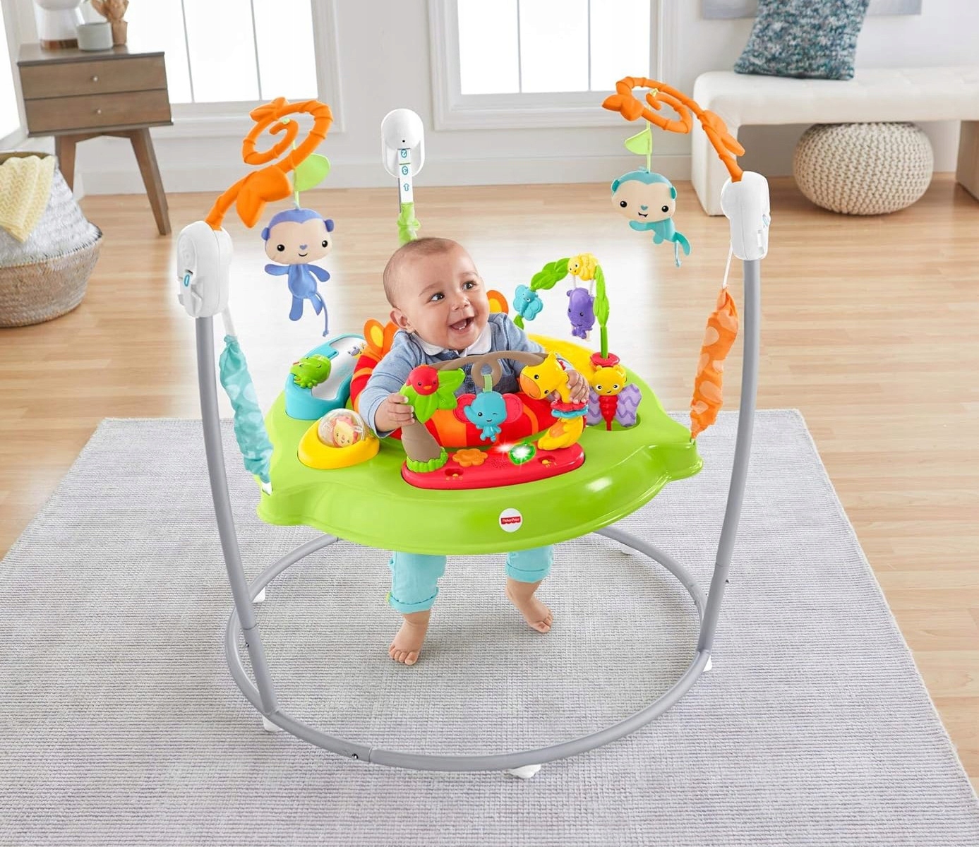 jumperoo имеет регулируемую высоту, а можно установить на 3 разных высотах . Благодаря этому игрушка может расти вместе с ребенком.